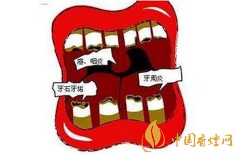當(dāng)吸煙時(shí),香煙的煙霧不斷地滯留在牙齒的周圍,這些煙霧中的焦油便沉積在牙面上形成煙漬,也稱煙斑。煙霧對牙齦是個(gè)物理刺激,可以使白垢和牙石增加而發(fā)生牙齦炎,進(jìn)一步發(fā)展就成為牙周炎。過多的煙斑沉積在牙齒的表面,會(huì)壓迫牙周組織,使局部的牙周組織發(fā)生萎縮而形成牙周炎。
