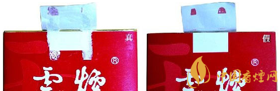 真品卷煙的拉帶頭呈半橢圓形,上下對稱,拉線上有點狀膠痕,俗稱“麻點”;假煙拉帶頭半橢圓形不規(guī)則,拉線上無“麻點”。