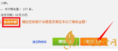 注意:在該界面,請點擊“查詢余額”查詢你的賬戶余額是否足夠支付本次訂單(若余額不足,會導致整個操作重新開始,很浪費時間)