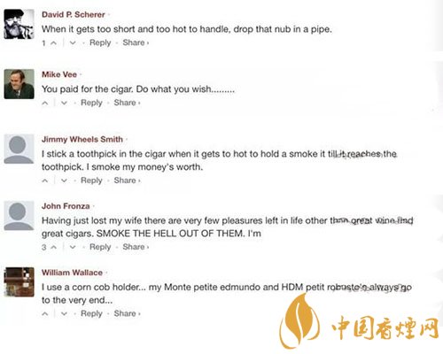 我們的看法跟第二位雪茄愛(ài)好者M(jìn)ike相同,你有權(quán)力和自由將雪茄抽到任何你想抽到的位置。如果你愿意,你可以嘗試上面雪茄愛(ài)好者們提到的方法,試試看將雪茄抽到盡可能短的程度,看看你會(huì)有什么不一樣的體驗(yàn)!