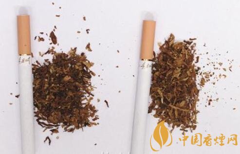 真品煙支采用單一醋纖濾嘴,長度為25mm,煙絲切絲寬度均勻,煙絲疏松、光澤油潤性好、含碎末少。煙絲結構為葉絲、膨脹葉絲、膨脹梗絲和再造煙葉;假煙煙支過濾嘴較短,長度約為21mm,制絲工藝粗糙,光澤油潤性差、煙絲中含碎末較多,大量梗絲未經(jīng)過膨脹處理,一般無膨脹葉絲和再造煙葉,與真品特征存在明顯差異。