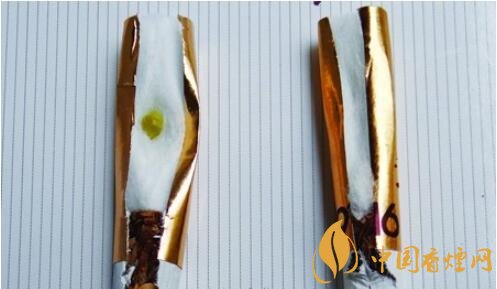 真品接裝紙嘴上有一排清晰可見的降焦打孔,濾棒中添加“增香保潤珠”,能夠達(dá)到有效降焦減害作用;假煙未采用打孔降焦,濾棒未添加“增香保潤珠”,與真品煙支特征存在顯著差異。