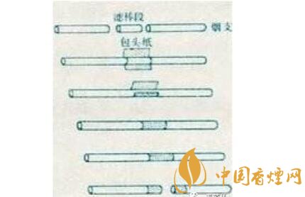 空腔濾嘴:空腔濾嘴是屬于二元復(fù)合濾嘴的一種,二元復(fù)合濾嘴通常是一段濾材為醋酸纖維,另一段為皺紋紙或生產(chǎn)過(guò)程中摻入添加劑(如活性炭)的醋酸纖維??涨粸V嘴是屬于后端為皺紋紙的那種,因?yàn)楹蠖藶橹锌?,為了不使其塌陷,而醋酸纖維太軟,所以利用皺紋紙做成中空型。因其有一段規(guī)則的空腔, 形成一個(gè)低壓通道,抽吸時(shí)吸阻小, 能夠顯著提高對(duì)煙氣中焦油的過(guò)濾效率,有效地減少焦油和一氧化碳的釋放量。
