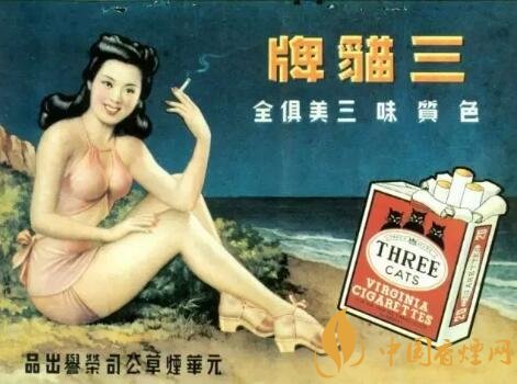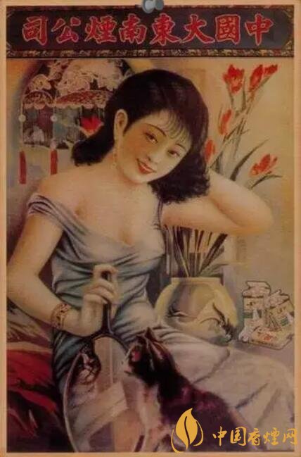 老虎牌香煙廣告是一個(gè)纖瘦美人正在吞云吐霧,背景就是香煙廣告語(yǔ)。