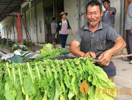 當(dāng)煙葉有綠色變?yōu)榈S,用手捏一下特粘時(shí)即可收獲。用煙刀每個(gè)葉帶煙拐割下后,在對置一天后即可上繩上架晾曬,在晾曬時(shí)要每隔幾天翻動(dòng)一次,使里外煙葉都曬成黃紅色,提高煙葉質(zhì)量。