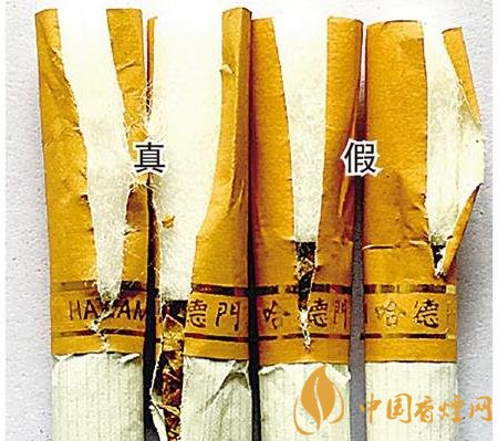 真品卷煙濾嘴棒長(zhǎng)度為2.5cm;假冒卷煙為節(jié)省成本,濾嘴棒長(zhǎng)度一般在2cm左右。