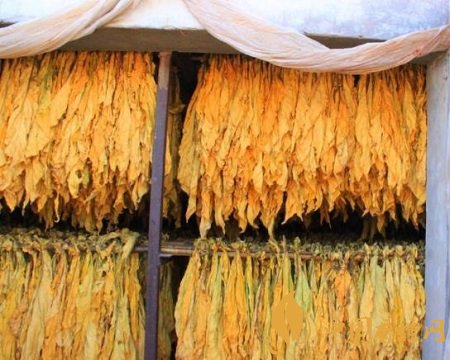 本階段的主要目標(biāo)是減少煙葉含水量,提高煙葉干燥度,阻止掛灰煙的產(chǎn)生。即穩(wěn)定主要變黃的濕球溫度,以每小時(shí)升溫1℃,將氣流上升烤房干球由40℃升到43-44℃,氣流下降式烤房干球由40℃升到42-43℃。直到高溫層煙葉尖部干燥,低溫層煙葉勾尖卷邊。烘烤12-16小時(shí)。必須注意的是,本階段不可掉溫或溫度超過(guò)上限,否則,煙葉將產(chǎn)生大量的掛灰煙,若發(fā)現(xiàn)煙葉產(chǎn)生掛灰現(xiàn)象,即可將干球溫度控在下限,可有效減少掛灰煙的產(chǎn)生。另外,煙葉的干燥目標(biāo)不實(shí)現(xiàn),應(yīng)延時(shí)烘烤。