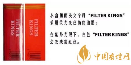 光變防偽涂層——小包側(cè)面“FILTER KINGS”字樣,經(jīng)陽光直射或紫外光照射后由白色變成紫紅色,停止照射后,紫紅色會逐漸消退。