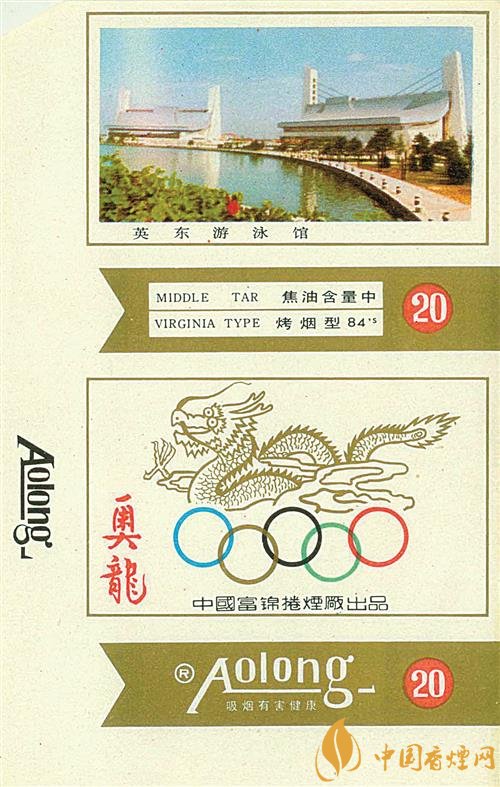 上世紀(jì)90年代,黑龍江富錦卷煙廠出品了“奧龍”煙標(biāo)(圖③),主版畫面是霍英東先生捐資興建的英東游泳館;副版圖案上方是騰云駕霧的神龍,下方是奧運(yùn)五環(huán)標(biāo)志。湖北武漢卷煙廠咸寧分廠于同時(shí)期出品的“奧博”煙標(biāo),主副版畫面均為著名的古希臘雕塑《擲鐵餅者》,在其下方是奧運(yùn)五環(huán)標(biāo)志、橄欖枝和地球圖案。同時(shí)期,湖北鄖陽卷煙廠出品的“搏冠”煙標(biāo),主版畫面是一名男足運(yùn)動(dòng)員正在踢球;副版畫面是雙龍和足球,上方印有“沖出亞洲 搏擊奧運(yùn)”的字樣。