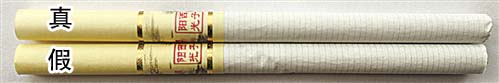 2.背面商標(biāo)紙印刷工藝差異對(duì)比:真煙背面中間“花球”圖案采用壓凸?fàn)C金工藝,用手摸凹凸感明顯,且“花球”線條清晰;假煙采用高清掃描仿制印刷,中間“花球”圖案用手摸無凹凸感,且“花球”線條模糊、部分區(qū)域有粘連重疊。