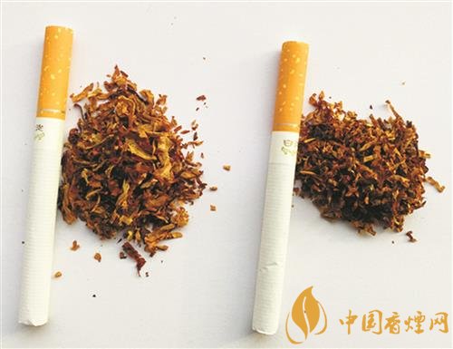 真煙煙絲疏松,光澤油潤性好,呈檸檬黃色,含碎末少;假煙制絲工藝粗糙,色澤發(fā)暗無光澤,煙絲中含碎末較多。