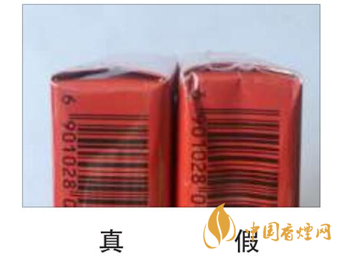小盒包裝兩個側(cè)面對比:真煙包裝的側(cè)面比較飽滿,稍稍向外鼓起;假煙包裝的側(cè)面不夠飽滿,有點向內(nèi)塌陷。