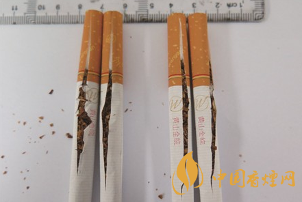 煙支降焦工藝差異對比:真品煙支采用25mm濾嘴棒長度,加長濾嘴棒長度能有效降低卷煙內(nèi)的焦油含量;假煙采用18mm濾嘴棒長度,無法達(dá)到有效降低焦油含量的作用,與真品煙支降焦工藝存在明顯差異。