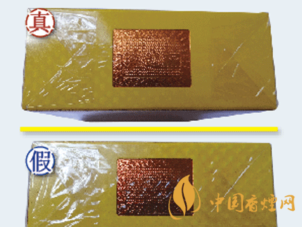 小盒頂部光柵防偽技術差異比對:真品小盒頂部正對光線時,小盒頂部光柵片會呈現(xiàn)出“黃金葉”三個字;假煙無任何防偽變化效果,與真品防偽效果存在明顯差異。