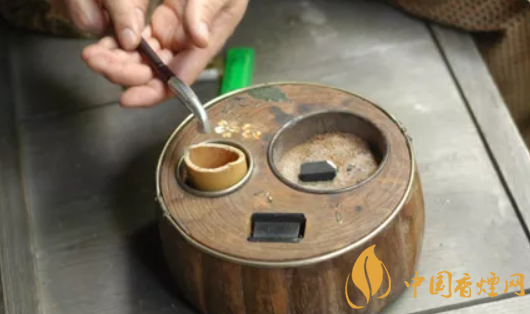 1、火入——是裝載火種的“火盆”。在使用時(shí),現(xiàn)將火入內(nèi)放入碳灰,再將燃燒的煤炭埋在火盆中央,便于點(diǎn)燃煙草。在使用之前,先要將之前燃燒殆盡的煙灰裝進(jìn)火入中,大概裝1/3-1/2即可。然后用火鉗夾取正在燃燒的木炭,將其放入火入。